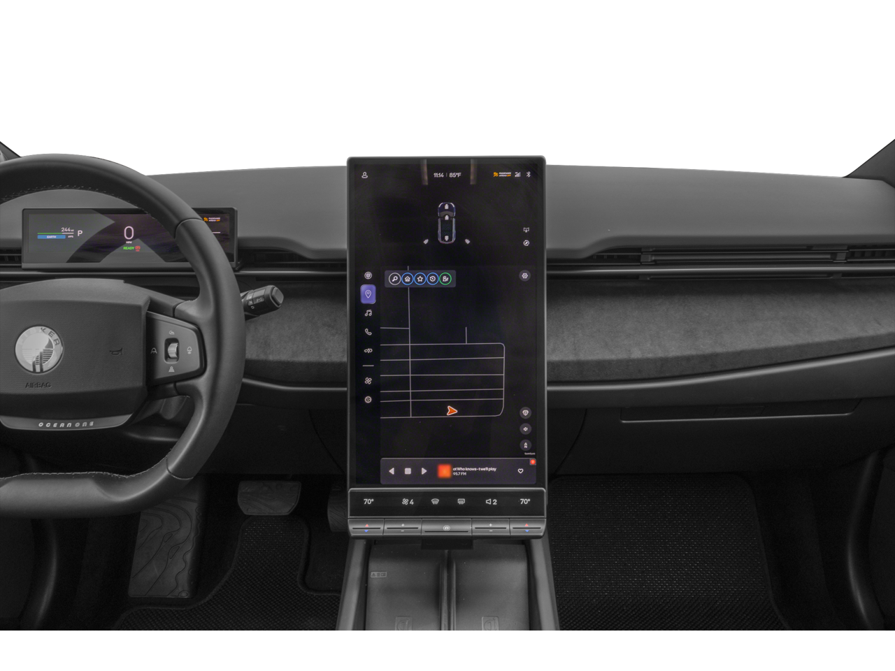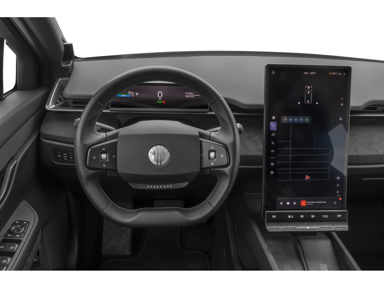 - Radio: Fisker Pulse Sound System w/Digital FM -inc: Powered by ELS STUDIO 3D, revolve 17.1" rotating central touchscreen w/control mode (portrait) and Hollywood mode (landscape), 360-degree of high-fidelity audio w/575 watts of power, DJX 3D surround, 15 speakers (including 19L subwoofer w/6-speaker dashboard arrays), always-on 4G connectivity for OTA updates, E-call+, Bluetooth® device connection, high-current USB, Fisker Ocean w/Alexa built-in, wireless phone charging - twin pad, Hollywood mode streaming services, memory features, navigation w/traffic information, app controls for entertainment mode in HMI (gaming, streaming, casting), web surfer, natural language voice activation for in-vehicle functions, route planner/maps and mobile device as additional infotainment screen and remote vehicle monitoring w/app/HMI